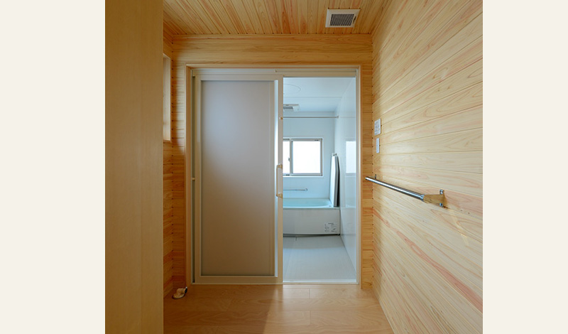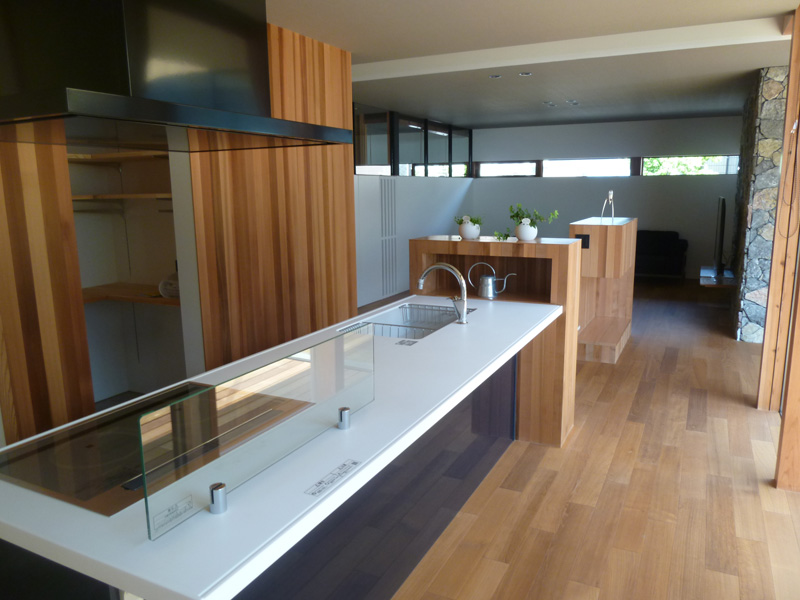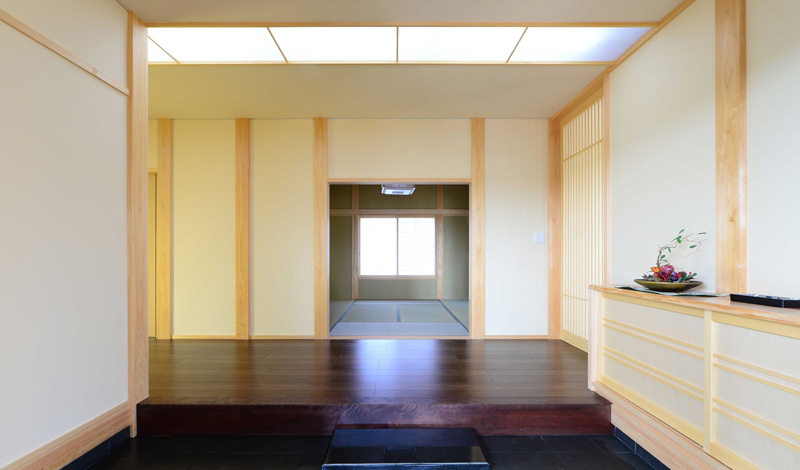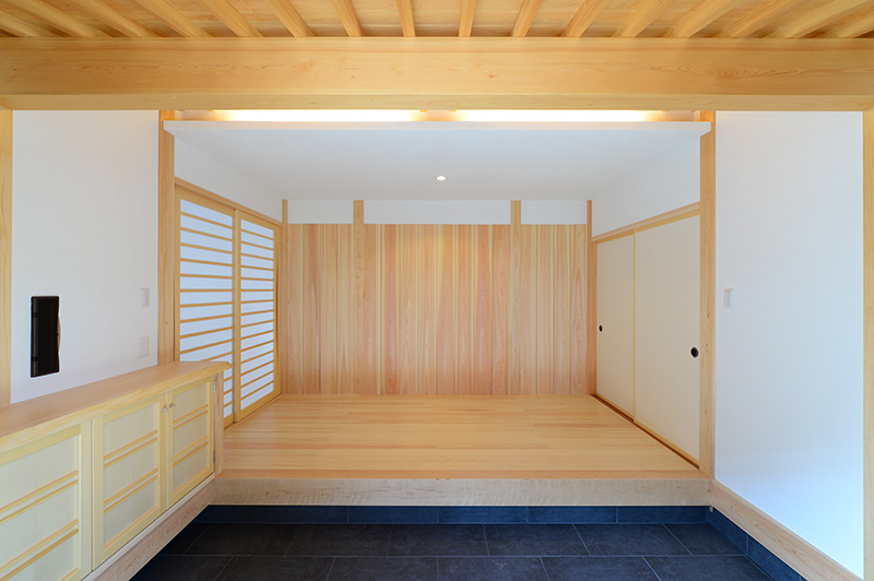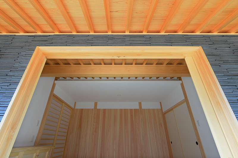桧材の特徴は色合いが艶やかなピンク色できれいな杢目で日本人なら誰もが知っている高級木材です。香りも気分を落ち着かせる成分があるやさしい木の香りがします。桧材は法隆寺、伊勢神宮など日本人に昔から愛されている木材です。古い桧を用いた建物が現在でも存在していることからわかるように耐久性が高く腐りにくい木材です。内装材に多く用いると家具、家電などどんな色でも合います。また、2,3年後には飴色に変色してすごく艶やかな光沢がでてきます。やさしい色合いと香りの日本人ならではの家をご希望の方にはこの桧材をお勧めします。